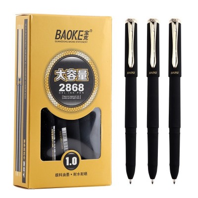 宝克(BAOKE)大容量中性笔 办公学生考试水笔磨砂笔杆 笔 办公文具12支/盒 PC2868黑色1.0mm