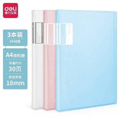 得力(deli)A4/30页淡彩资料册 活页文件夹 资料试卷收纳袋/册 3只混色装 27151