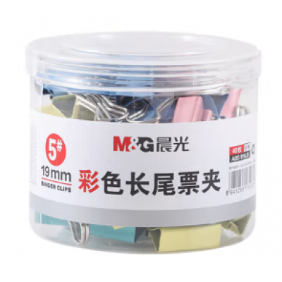 首页 > 办公用品 > 文具 > 晨光(M&G) 19mm 长尾夹 彩色长尾夹 大号金属票据夹 24只/罐