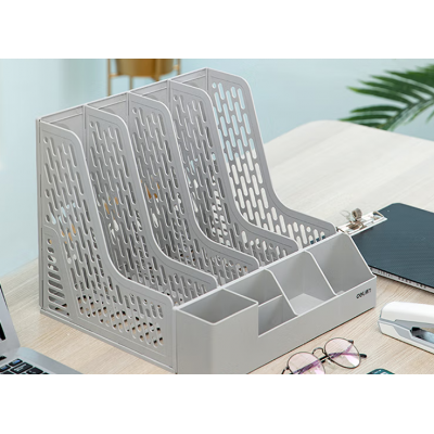 首页 > 办公用品 > 文具 > 得力(deli) 78981 文件筐 收纳桌面文件框书立 办公室桌面多层资料架子 多功能镂空文件架 灰色
