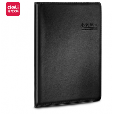 得力(deli)7949 薄本册 16K80张大号会议记录本皮面本 记事本日记本笔记本子文具办公用品 黑色