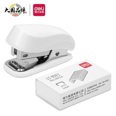 得力(deli)12#迷你便携订书机套装(订书机+订书针) 试卷装订 学习用品 白色0255