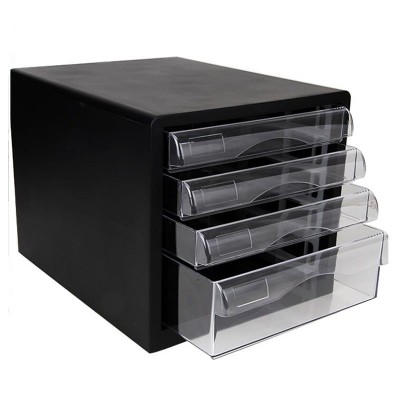 得力(deli) 桌面文件柜资料柜a4文件盒收纳柜塑料抽屉式不带锁四层9774 颜色随机