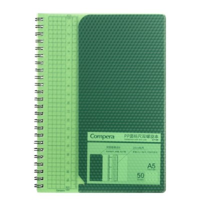 齐心 C7109 Compera 钻石系列 PP面标尺双螺旋本 A5 50张 绿