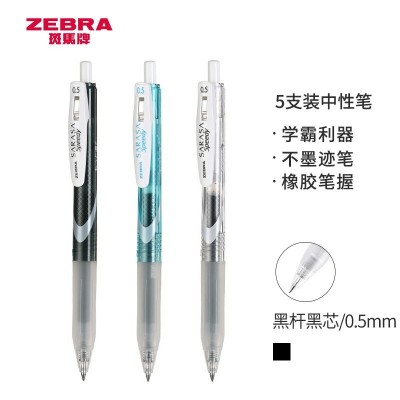斑马牌(ZEBRA)中性墨水中性笔 Speedy速记学霸笔 0.5mm子弹头大容量手账笔 JJZ33 黑杆黑色 5支装