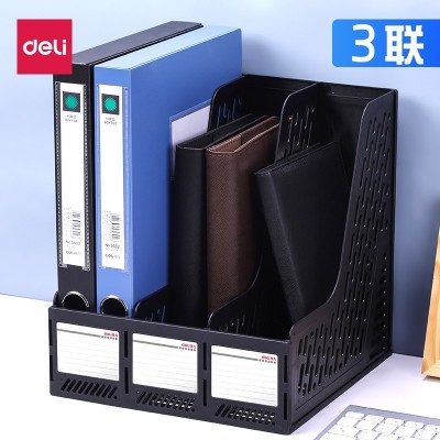 得力文件框 四联文件座桌上资料架大全加厚整理置物塑料书立书架档案文件夹收纳盒框 33666_三联_黑色