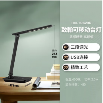 松下(Panasonic)台灯工作台灯台灯护眼三段调光可移动便携式台灯U电版 (不含插头) HHLT0628U