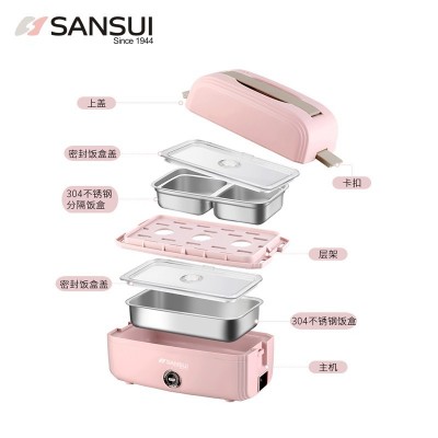 日本山水(SANSUI)电热饭盒便携式电饭煲多功能电热饭盒加热保温上班族办公室煮饭神器电热饭盒F08 白色