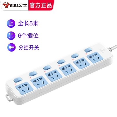 首页 > 建筑建材 > 开关插座 > 公牛(BULL) GN-317 插座分控插排独立开关多功能接线板家用电插板带线拖线板 6插位 5米