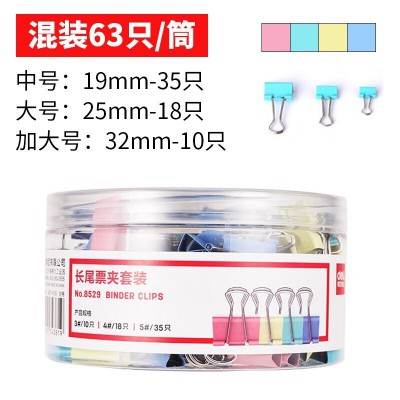 得力(deli)63只多规格彩色长尾夹/燕尾夹/票夹(32mm10只+25mm18只+19mm35只) 8529