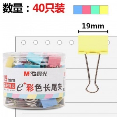晨光(M&G)Eplus系列19mm彩色长尾夹燕尾夹票据夹 40只/罐ABS92742