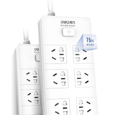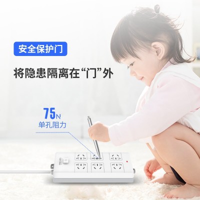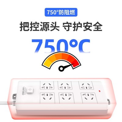 首页 > 建筑建材 > 开关插座 > 得力(deli)18267 新国标安全插座 插排/插线板/接线板/排插/拖线板 50mm大孔距 总控开关 6组合孔3米