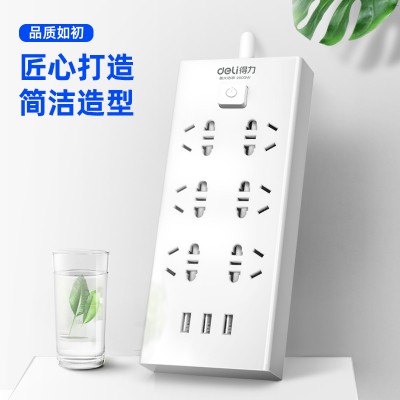 得力(deli)USB智能插座 插排/插线板/接线板/排插/拖线板 3USB接口+6孔 总控3米 18284-03