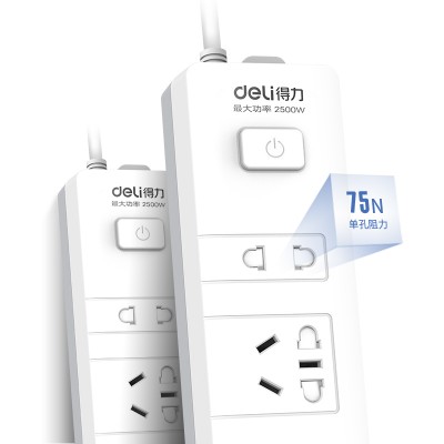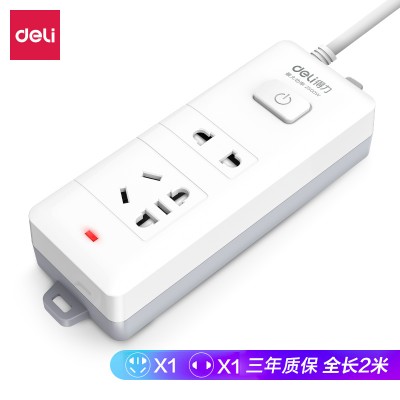 首页 > 建筑建材 > 开关插座 > 得力(deli)新国标安全插座 插排/插线板/接线板/排插/拖线板 总控开关 儿童保护门 2位2米 18276-02