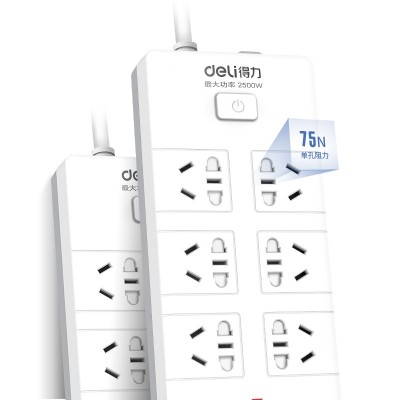 首页 > 建筑建材 > 开关插座 > 得力 deli 18264插座 插排/插线板/接线板/排插/拖线板 新国标 6位组合孔10米 总控开关