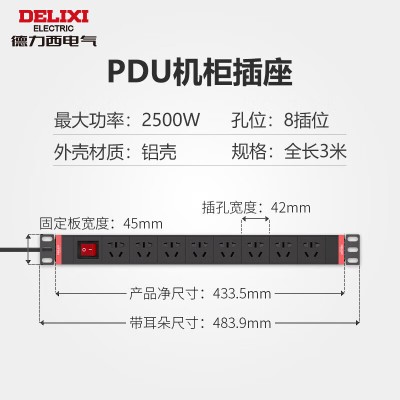 首页 > 建筑建材 > 开关插座 > 德力西(DELIXI)开关插座 PDU机柜插座 8位总控全长3米 CD98PDU-K8X 3