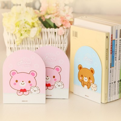得力(deli)书立文具书立小熊金属书立可爱卡通创意书立炫彩时尚书挡2片_1付颜色随机 9273