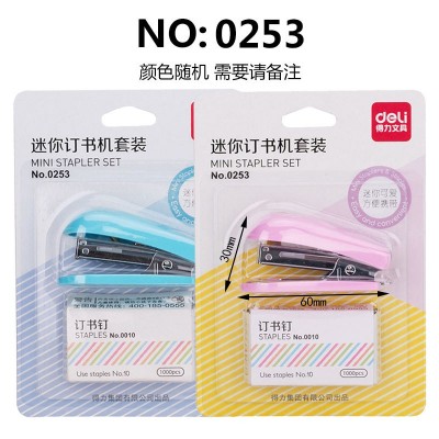 得力迷你订书机小号便携10号小型订书器 0253订书机 颜色随机(带一盒订书针)