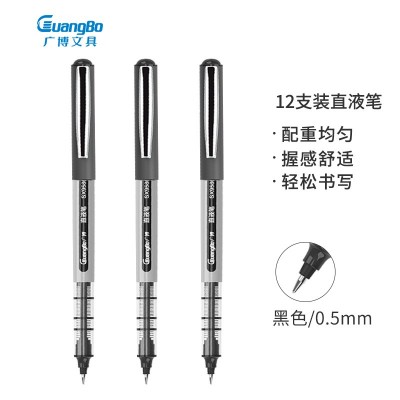 广博(GuangBo)SX9586D0.5mm黑色直液式走珠笔 签字中性笔 学生考试笔 一盒装