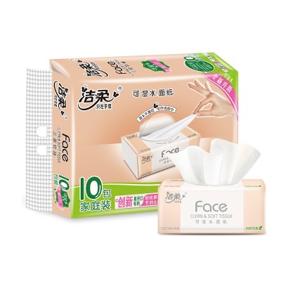 洁柔抽纸 粉Face 柔韧3层120抽面巾纸*10包 M号 可湿水