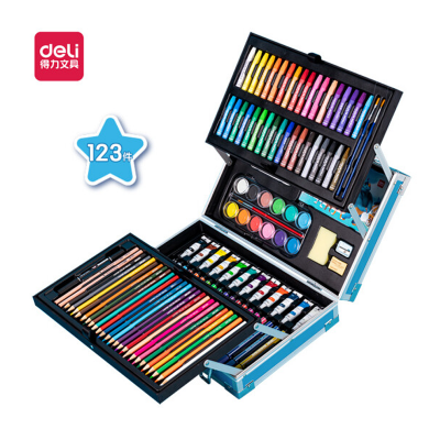 得力(deli)绘画套装豪华123件水彩笔颜料彩铅蜡笔套装儿童双层铝合金画材美术画画套装六一生日礼物75406