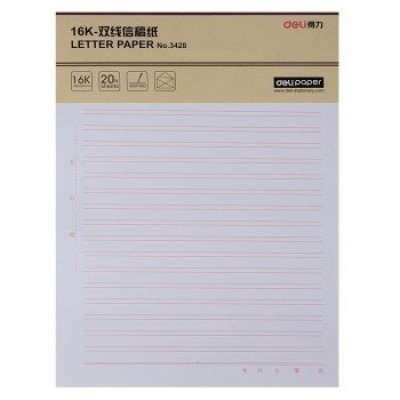 首页 > 办公用品 > 文具 > 得力(deli)3428 双线信稿纸 70g 16K 20张/本 3本/包