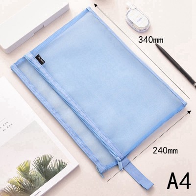 得力(deli) A4文件袋透明网格拉链袋档案袋办公资料袋试卷票据收纳袋 A4浅蓝双层_5576