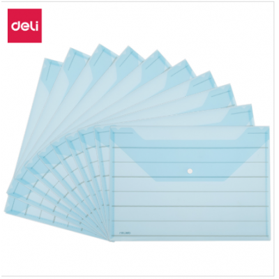得力(deli)10只A4条纹透明文件袋 按扣资料袋 8313蓝色