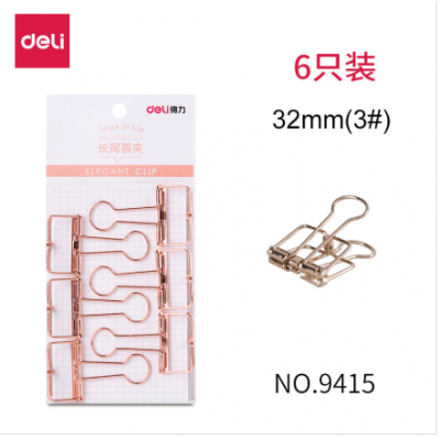 得力(deli) 金色长尾夹镂空创意办公用品小夹子铁夹 印花文具手帐夹子 32mm(3#) 6只装 9415