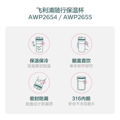 首页 > 用具 > 其他厨房用具 > 飞利浦保温杯316不锈钢内胆男女办公杯车载随身杯泡茶咖啡杯大容量保温水杯子500ml AWP2655BK黑色