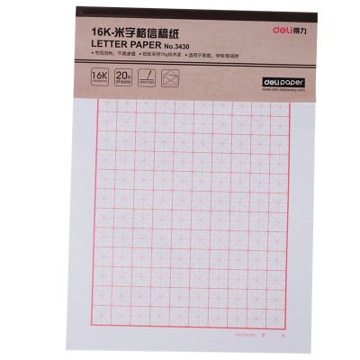 首页 > 办公用品 > 文具 > 得力(deli)信纸作文纸草稿纸单线_双线_方字格_米字格书写纸 3430米字格信稿纸3本