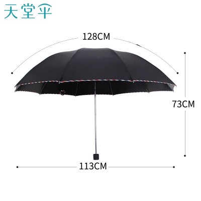 首页 > 建筑建材 > 身体防护 > 天堂伞 三折加大64cmX10骨黑胶晴雨伞防晒男女通用大伞商务伞太阳伞 3311E碰升级黑色