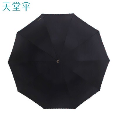 天堂伞 三折加大64cmX10骨黑胶晴雨伞防晒男女通用大伞商务伞太阳伞 3311E碰升级黑色