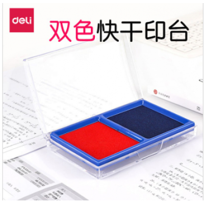 首页 > 办公用品 > 文具 > 得力 9865双色快干印台印泥 红+蓝色 财务办公 一盒两色