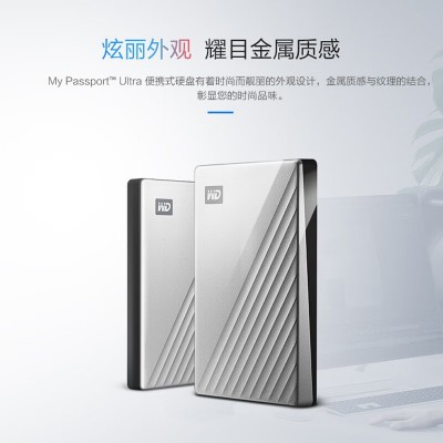 西部数据(WD) 2TB 移动硬盘 Type-C My Passport Ultra 2.5英寸 银 便携存储 密码保护 兼容Ma