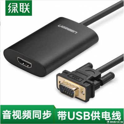 绿联(UGREEN)VGA转HDMI线转换器高清视频转换线转接头 笔记本电脑连接电视投影仪线 黑40264