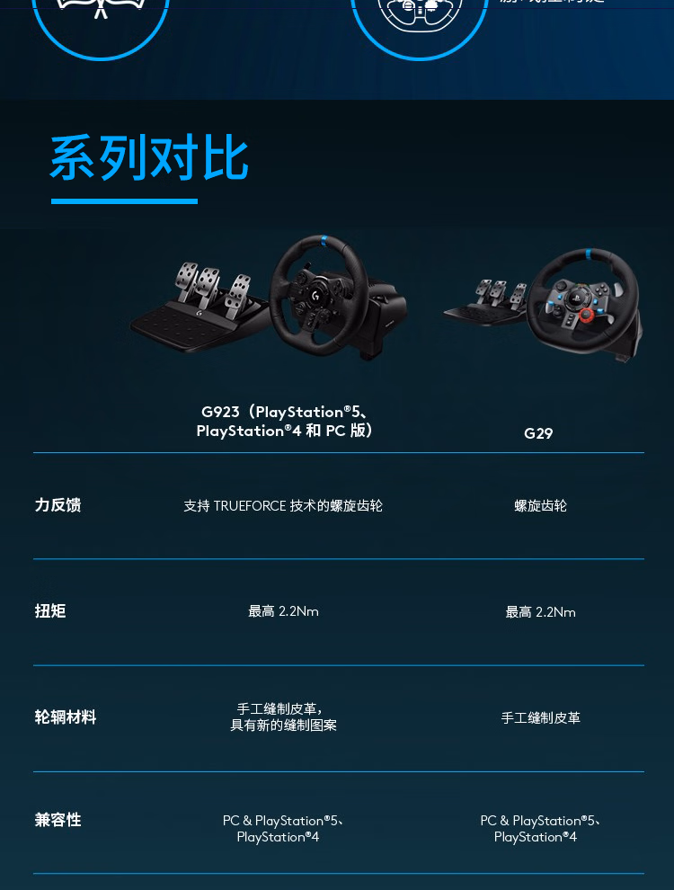 首页 > 广播、电视、电影设备 > 组合音像设备 > 会议、广播及音乐欣赏系统 > 罗技G923 高分辨率力反馈技术方向盘及踏板 赛车仿真模拟驾驶 PC/PS4/PS5 地平线4欧卡2 TUREFORCE