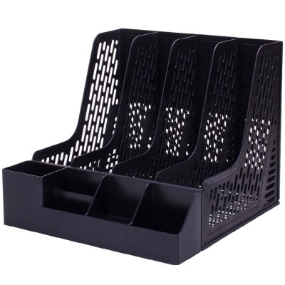 得力(deli)78981 加厚型带笔筒四联文件框 黑色
