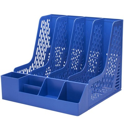 得力(deli)78981 加厚型带笔筒四联文件框 蓝色