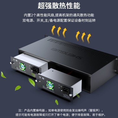 胜为(shengwei) 14槽光纤收发器专用机架带电源及开关 标配型带上柜配件 兼容千兆百兆 SC-1014B