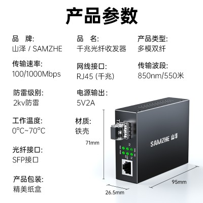 山泽(SAMZHE)千兆多模双纤光纤收发器 SFP模块LC接口 550米套装 SZ-FCQLMMS