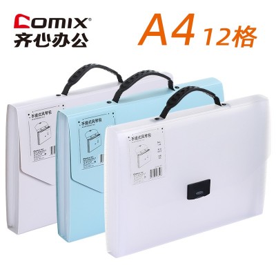齐心A3198风琴包A4手挽13格文件手风琴包 蓝色