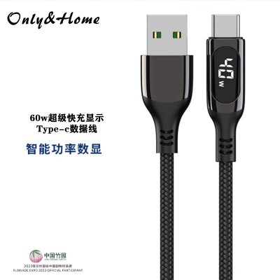 only&home Type-c闪充数据线 Type-c数据线充电器线华为小米手机5A快充60w超级快充显示