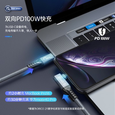 首页 > 信息化设备 > 数据线 > 奥睿科(ORICO)雷电4 100W Type-C TO Type-C弯头数据线 TBW4-20-GY-BP
