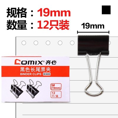 首页 > 办公用品 > 文具 > 齐心 B3609黑色长尾票夹 5# 19mm 12只盒