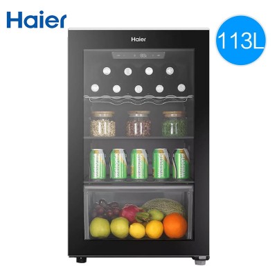 海尔冰吧 家用小型透明玻璃门单门冰箱 121升黑色电子控温带显示屏