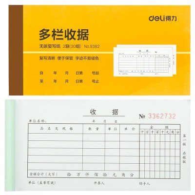 得力9382二联多栏收据(黄)87*175mm(本)