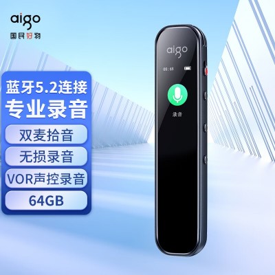 爱国者 aigo录音笔R3312pro 一键录音专业录音高清降噪 学习培训商务会议采访 录音器 MP3播放 灰色 64G