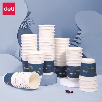 首页 > 用具 > 其他厨房用具 > 得力(deli)280ml一次性纸杯水杯 加厚烫金压纹高端商务 蓝色 50只装 19215