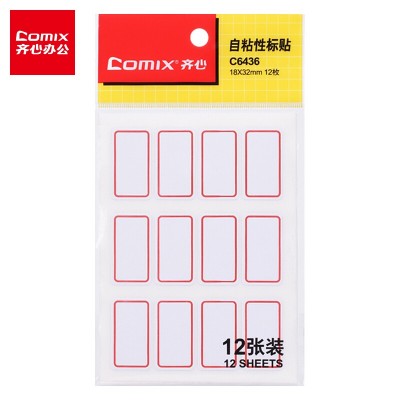 首页 > 办公用品 > 文具 > 齐心(Comix)144枚1832mm红框不干胶自粘性标签贴纸姓名贴标贴纸 12枚12张C6436
